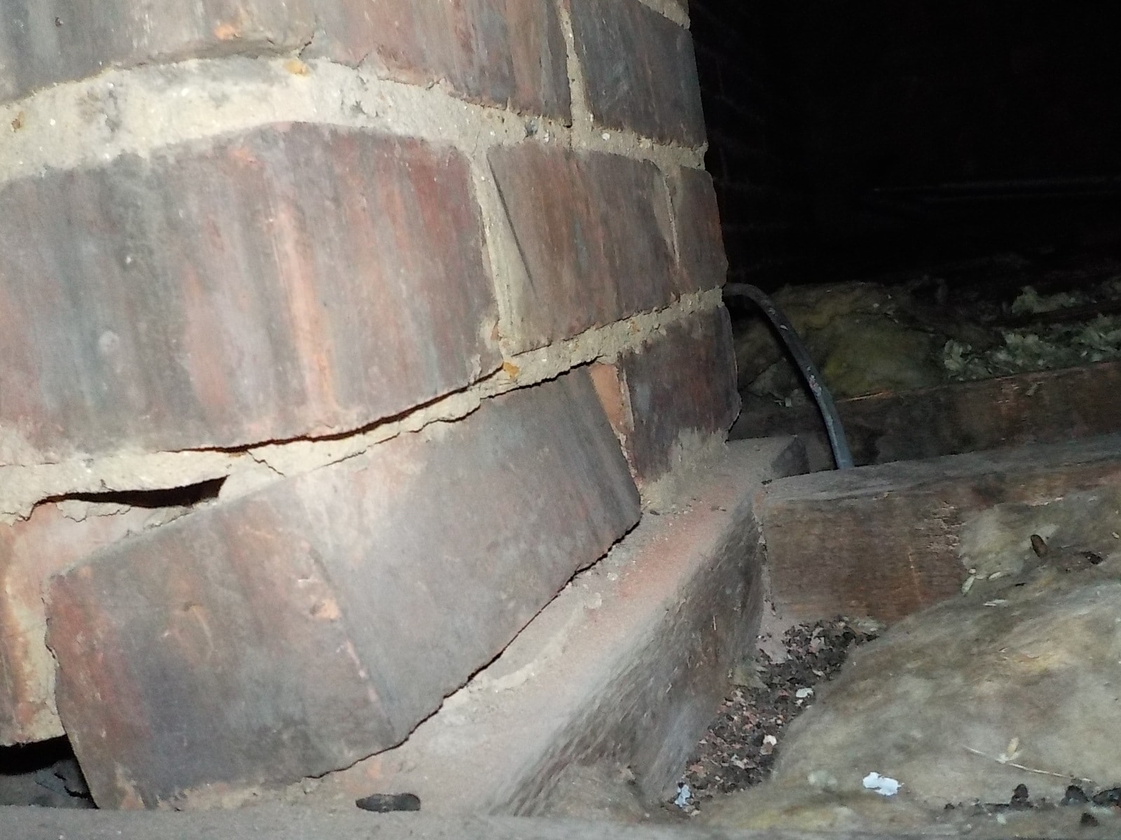 This chimney which has had its base removed is now unsupported as can be seen by the loose brick and gap under the brick behind.