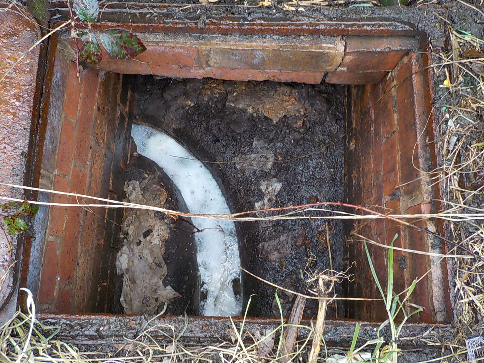 This channel is holding water. Debirs on the sides of the chamber suggest that it has been badly blocked before and that the drians may have an ongoing problem.