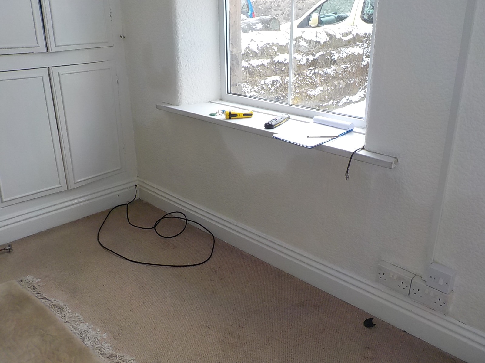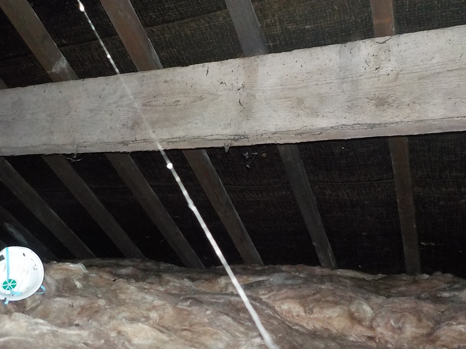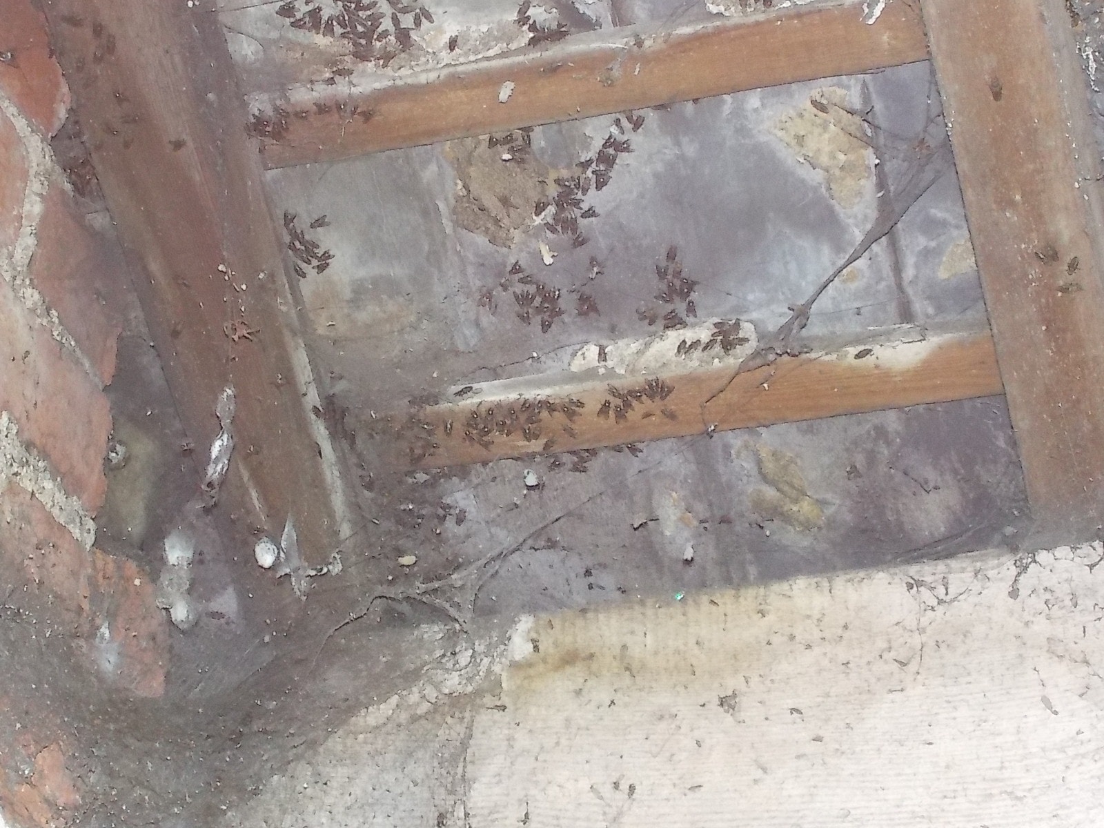 This side of the roof has its original slate roof which is likely to be approaching life epxiry. The most likely casue of failure will be corrosion of the nails that fix the slates. There apeared to be a substanital number of flies clustering around this particular slate even in the depths of winter. They were quite active.