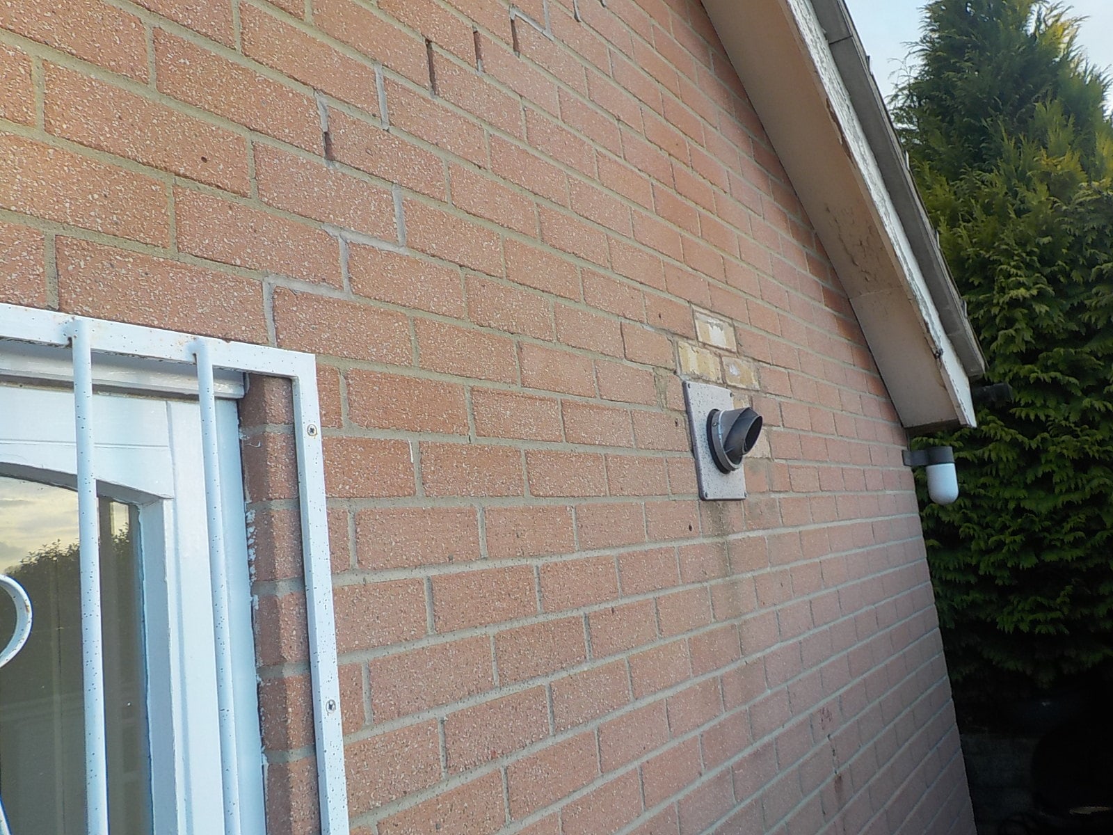 The fractures is vertical in nature, is largely confined to the mortar joints, appears to be entirely above the engineering brick damp proof course from which it runs through the window opening and then in a stepped manner up through the mortar joints up to the roof edge. Three bricks below the window opening have been disturbed. The pointing is missing from some of the vertical joints above the window opening. The disturbance of the bricks and loss of pointing make the movement appear to be more significant than it actually is. See Photographs 3 and 4.